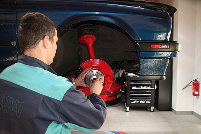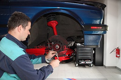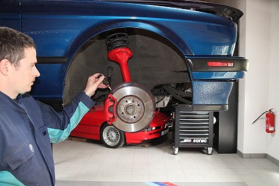 E30 Bremssattel wird zunächst an seinen Befestigungspunkten mit