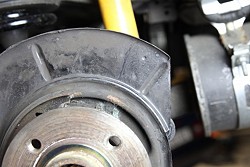 Bremsscheibe (bei 4x100 samt Zentrierring) wird nun montiert und mit