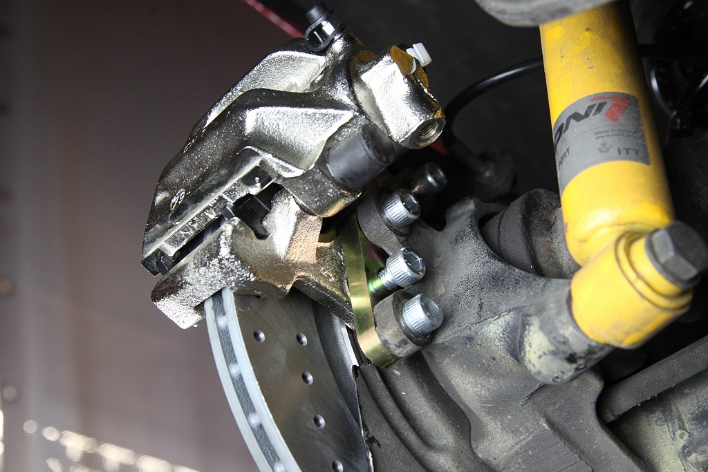 daß der Sattel nur knapp zwischen Adapter und Bremsscheibentopf passt.