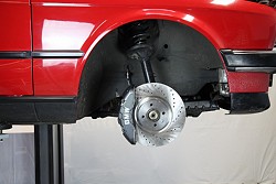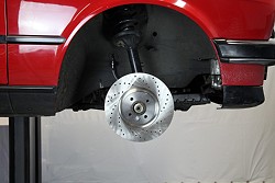 E30 wird die originale Bremsanlage komplett entfernt. Im Foto fehlt das