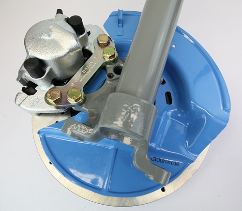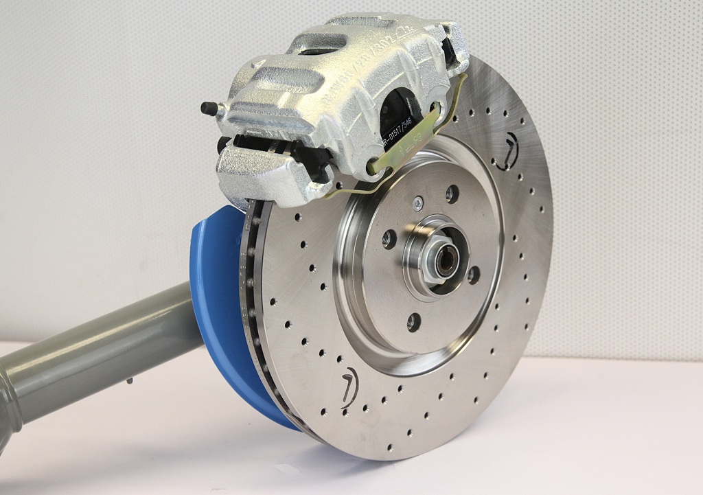 An der Vorderachse wird der vordere E34 540i (oder E32 750i) Bremssattel mit dem Gußaufdruck 60/28/302 mit einer speziellen 312x25mm Bremsscheibe und dem Adapter 312-3 kombiniert. Die Bremsscheibe stammt ursprünglich aus dem VAG Konzern und wird direkt bei der Herstellung mit dem E30 4x100 Lochkreis hergestellt. Die gelochte Ausführung ist laufrichtungsgebunden. Die Lieferfähigkeit in den nächsten Jahrzehnten ist gewährleistet.